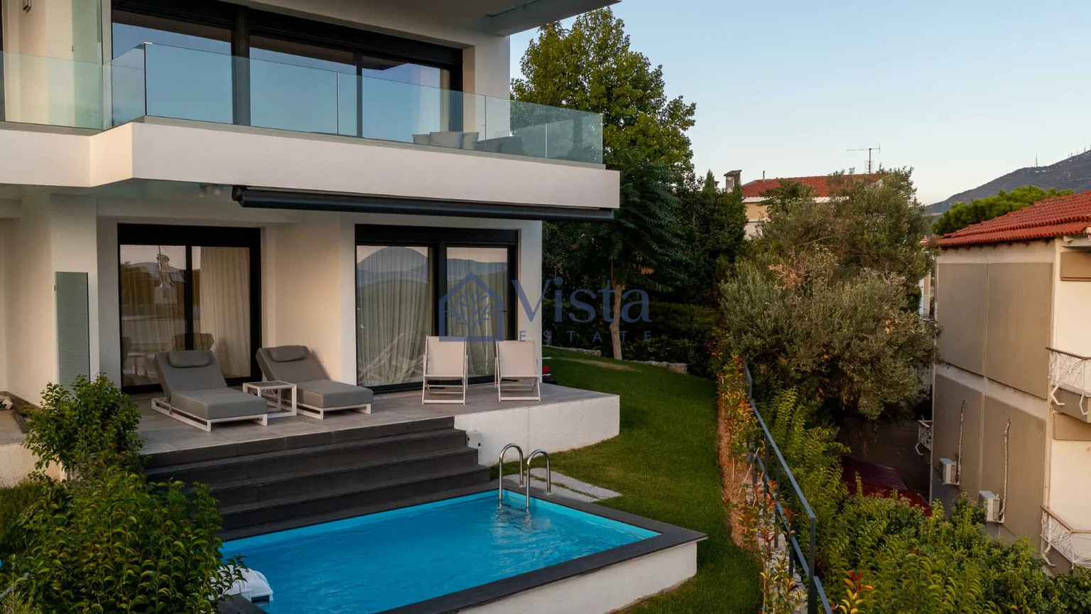 Built in 2023, this fully furnished residence boasts top-tier energy efficiency (A+ rating), underfloor heating, and sleek, contemporary finishes throughout. A private, south-facing swimming pool invites you to relax in the sun while enjoying views that stretch from the city skyline to lush countryside and picturesque villages.