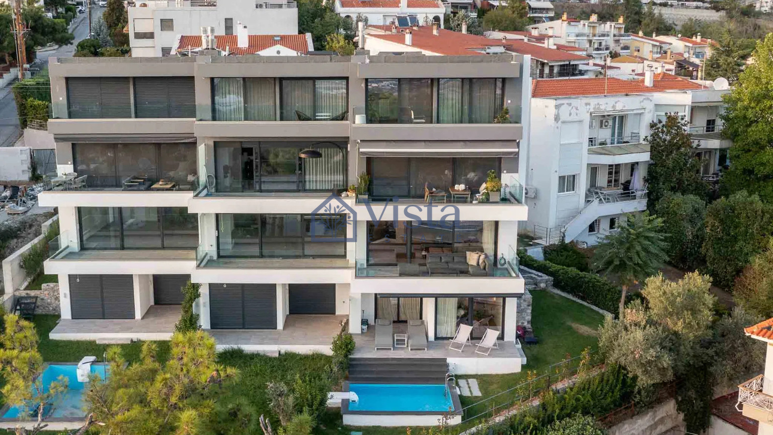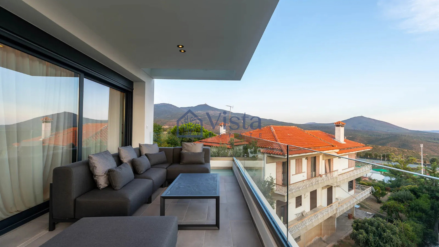 The maisonette is located in the sought-after Panorama, Center area, known for its tranquil atmosphere, scenic landscapes, and stunning vantage points. Residents benefit from quick access to the highway, bringing all essential amenities, shops, and cafes within easy reach, while still enjoying a peaceful setting with panoramic views.