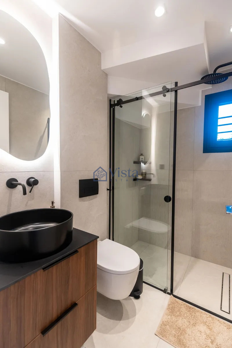 For sale: a stunning, key ready maisonette offering 210 square meters of internal space. This modern home features three spacious bedrooms and two elegant bathrooms, perfect for both families and individuals seeking comfort and style. The property spans the first two floors of a three-story building with a convenient elevator, and it includes a well-designed basement for extra storage or recreational use.