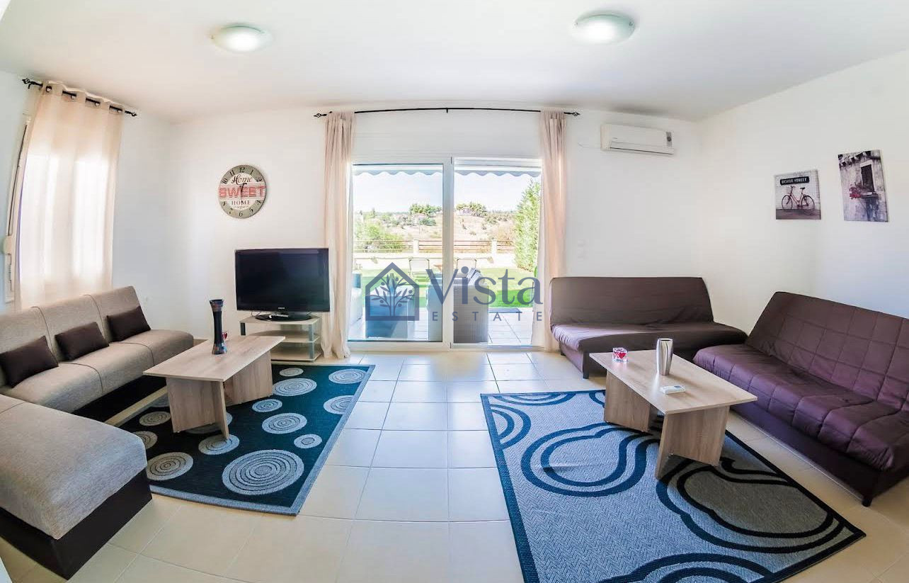The villa is fully furnished, ensuring you can move in with ease once construction is complete. A large south-facing plot surrounds the property, providing ample outdoor space to relax and enjoy the exceptional country and panoramic views. A well-sized basement adds to the functional space, suitable for storage or as a versatile recreational area.