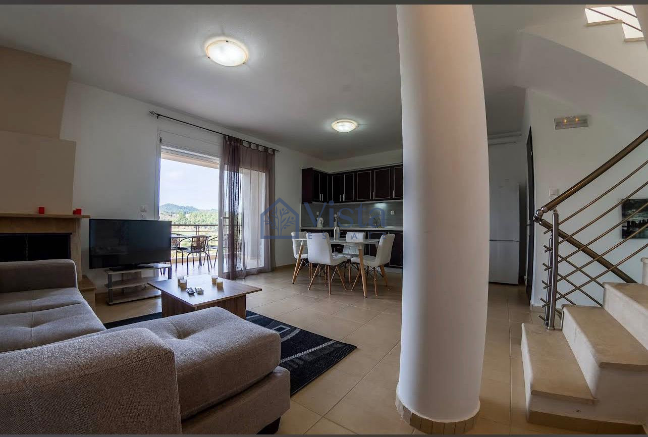 For sale: This beautifully designed villa offers modern living in the peaceful area of Pallini, Paliouri. The villa is still under construction, allowing you the unique chance to add your personal touch to the finishing details. With a spacious internal area of 128 m², the home features two comfortable bedrooms and two stylish bathrooms, ideal for families or couples seeking extra space.