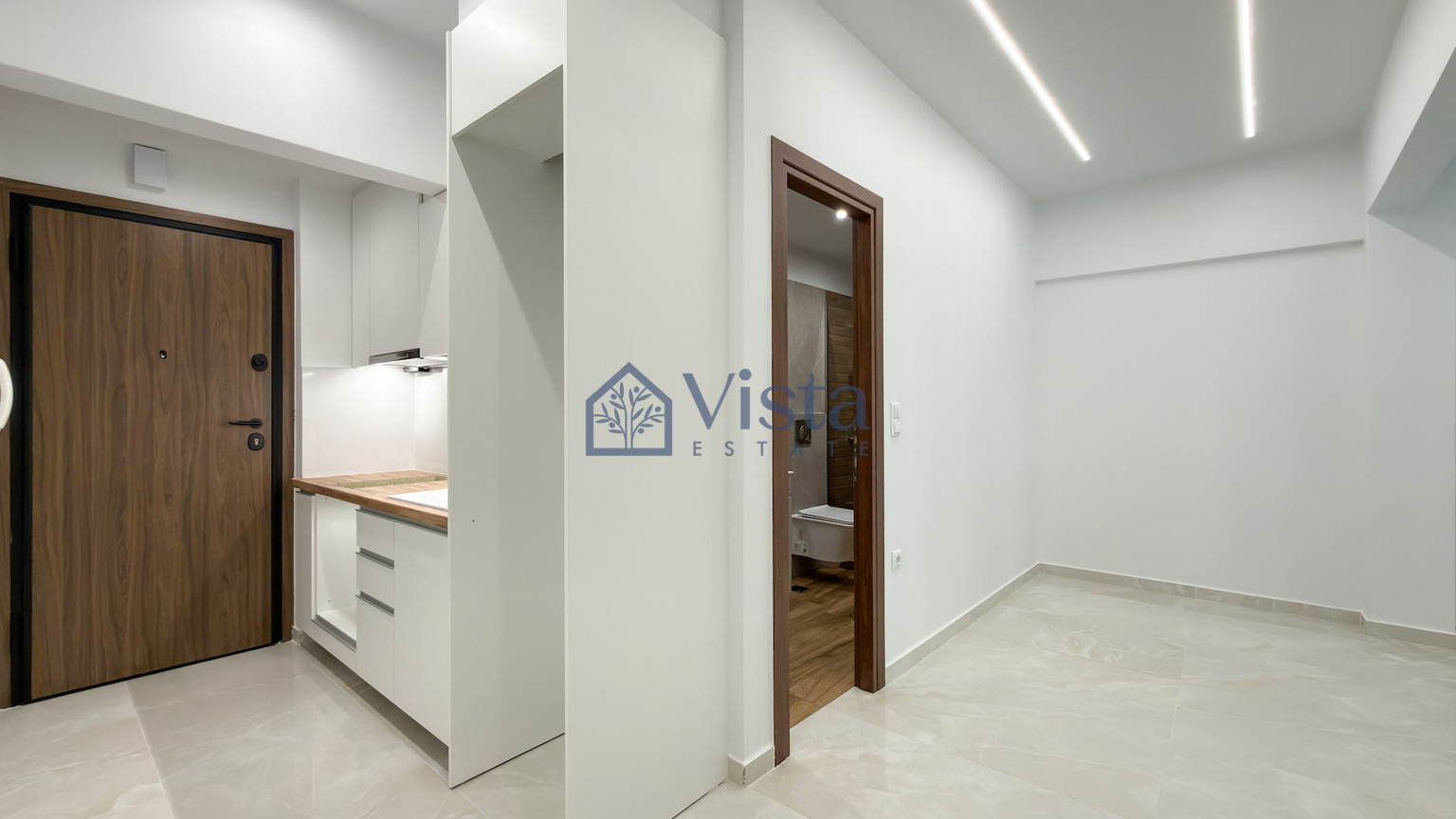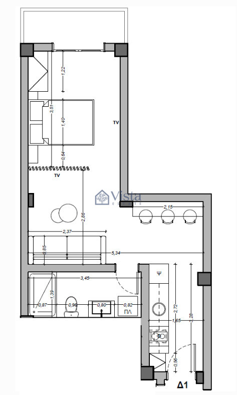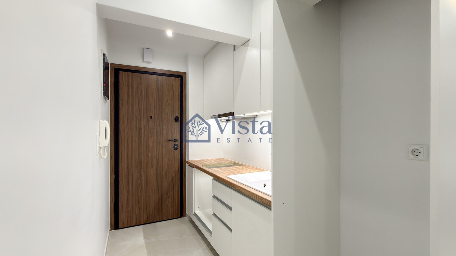 For sale is a modern studio apartment located on the 1st floor of a well-maintained, three-story building in the Center. Offering a comfortable internal space of 35 m2, this unit features an open living area and a stylish bathroom, all recently renovated in 2026. The apartment's contemporary finish blends seamlessly with the building's original 1967 architecture, creating a unique and inviting atmosphere.